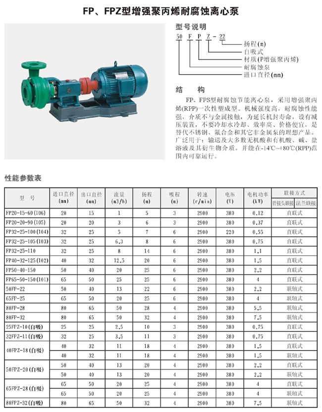 FP、FPZ型增强聚丙烯耐腐蚀离心泵